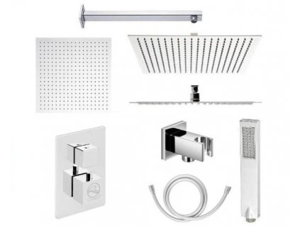 - Čtvercový půdorys s nízkou vaničkou (výška 15 cm)