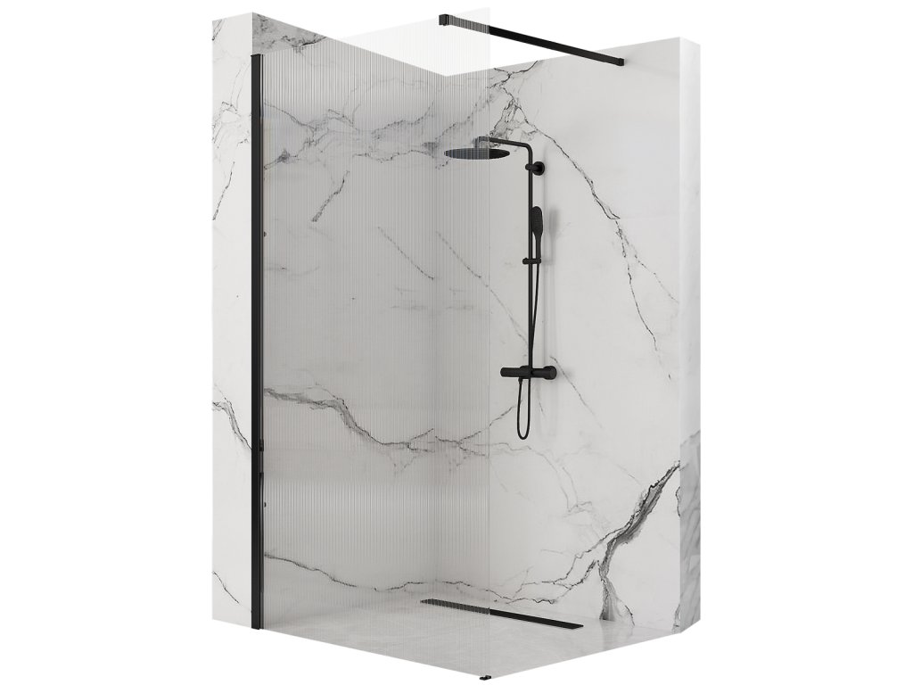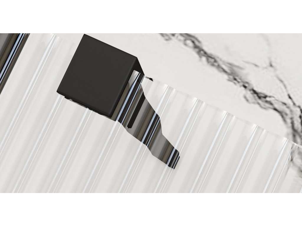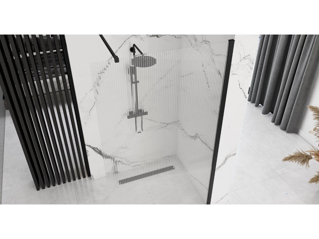 Designová varianta sprchového koutu Walk In s černými profily, která se řadí mezi z jedny nejmodernějších trendů ve vybavení koupelen. Jedná se o otevřený sprchový kout, tvořený jednou stěnou z bezpečnostního tvrzeného skla, zabraňující nechtěnému rozstřiku vody. Skla jsou v rýhovaném provedení, díky kterému sprchové dveře působí intimněji. Povrchová úprava Easy Clean zabraňující usazování nečistot a tvorbě tzv. map po stékající vodě na skle. Voda je odváděna odtokovým kanálkem, umístěným v podlaze. Univerzální provedení pravé nebo levé varianty si dle potřeby zvolíte při montáži. Černé prvky jsou laserem čtyřikrát potaženy povlakem nejvyšší kvality. Díky této technice jsou hliníkové profily chráněny proti korozi, poškození a zabarvení. Sprchový kout Aero dodá Vaši koupelně na moderním a čistém vzhledu a Vaše koupelna získá ojedinělý designový nádech v nejmodernějším trendu.