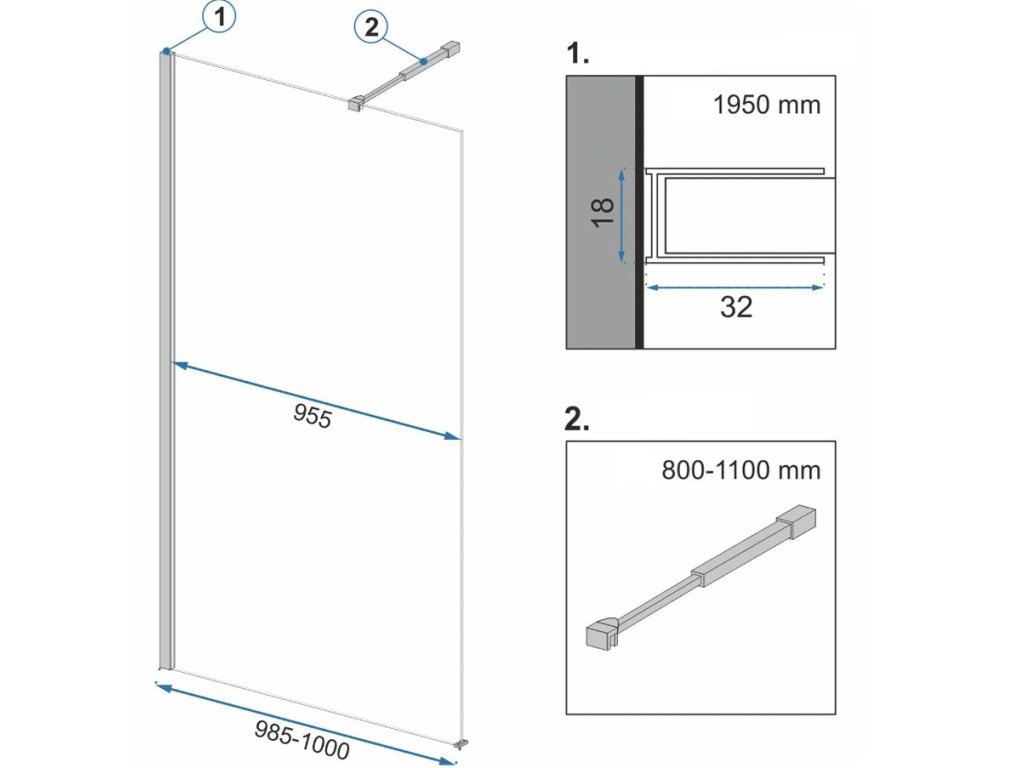 Tabulka rozměrů sprchového koutu Aero Walk In