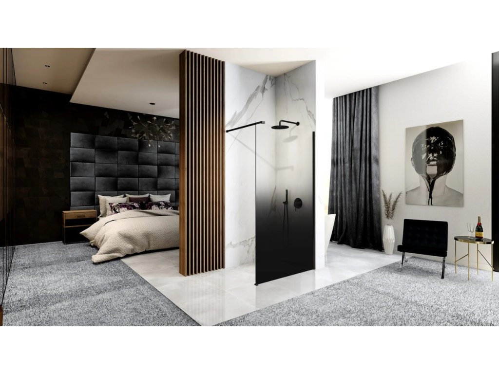 Představujeme moderní sprchovou stěnu Aero Ombre, která kombinuje funkčnost s jedinečným designem. Je vyrobena z tvrzeného skla, je odolná a bezpečná. Ombré efekt, přecházející z průhledné horní části do černé ve spodní části, dodává koupelně eleganci a styl. Sprchová stěna je k dispozici v různých velikostech, aby vyhovovala individuálním potřebám. Výrobek se vyznačuje snadnou instalací nad sprchovou vaničku nebo přímo na podlahu a účinně chrání před stříkající vodou a zároveň se snadno čistí. Ideální pro moderní koupelny, ať už v soukromých domech nebo v hotelech. Sprchová stěna Aero je kombinací stylu a pohodlí, poskytuje jedinečný vzhled a funkčnost.