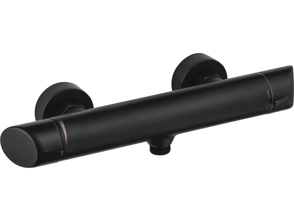 Nástěnná dvouručková sprchová baterie z autorské kolekce Arnika je baterie v klasickém a elegantním provedení v černé matné barvě. Harmonické geometrické tvary kolekce, inspirované dánskou myšlenkou štěstí hygge, jdou ruku v ruce s kvalitou a funkčností výrobku. Zde představená nástěnná dvouručková sprchová baterie je vybavena pohodlnými knoflíky místo klasické páky, zpětnými ventily a keramickou hlavicí odolnou proti usazování vodního kamene. Uspořádané tvary kolekce Arnika nejenže vnášejí do interiéru harmonii, ale také usnadňují udržování čistoty v koupelně. Hladké povrchy bez záhybů a zákoutí snižují riziko nadměrného usazování vodního kamene.