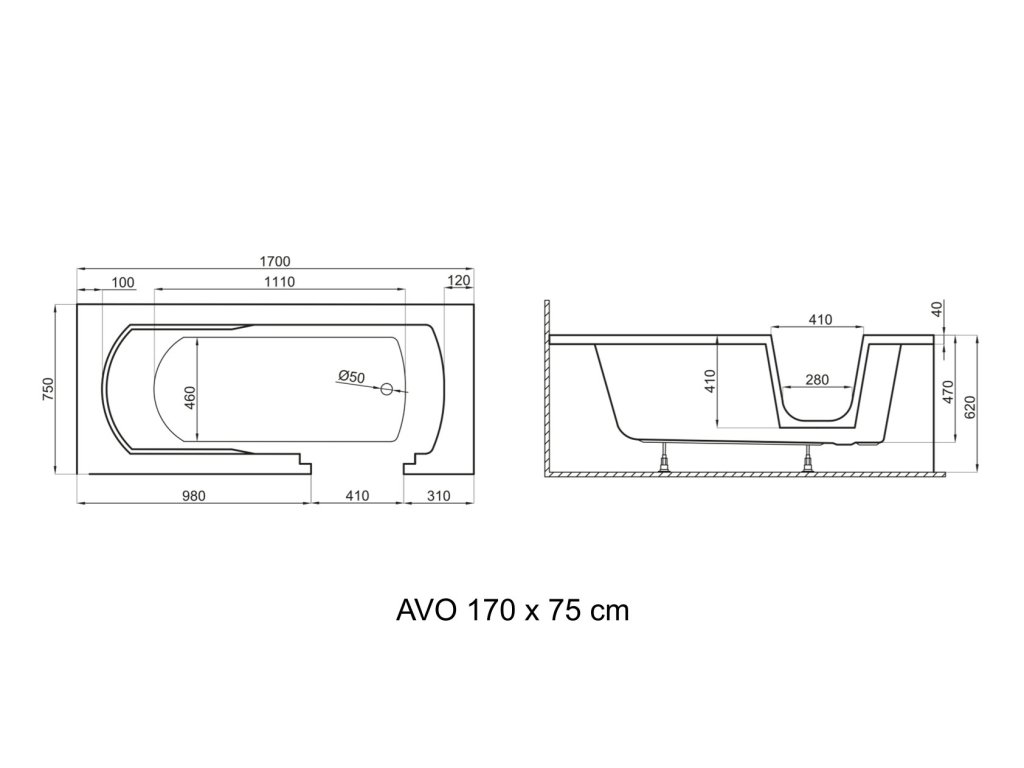 - Sedací vana Avo je vhodná k instalacím v soukromých domácnostech, ale i v pečovatelském sektoru. Odnímatelné sedátko v černé barvě ocení osoby se zdravotním handicapem a senioři, pro které zdvih ze dna vany představuje velký problém.
