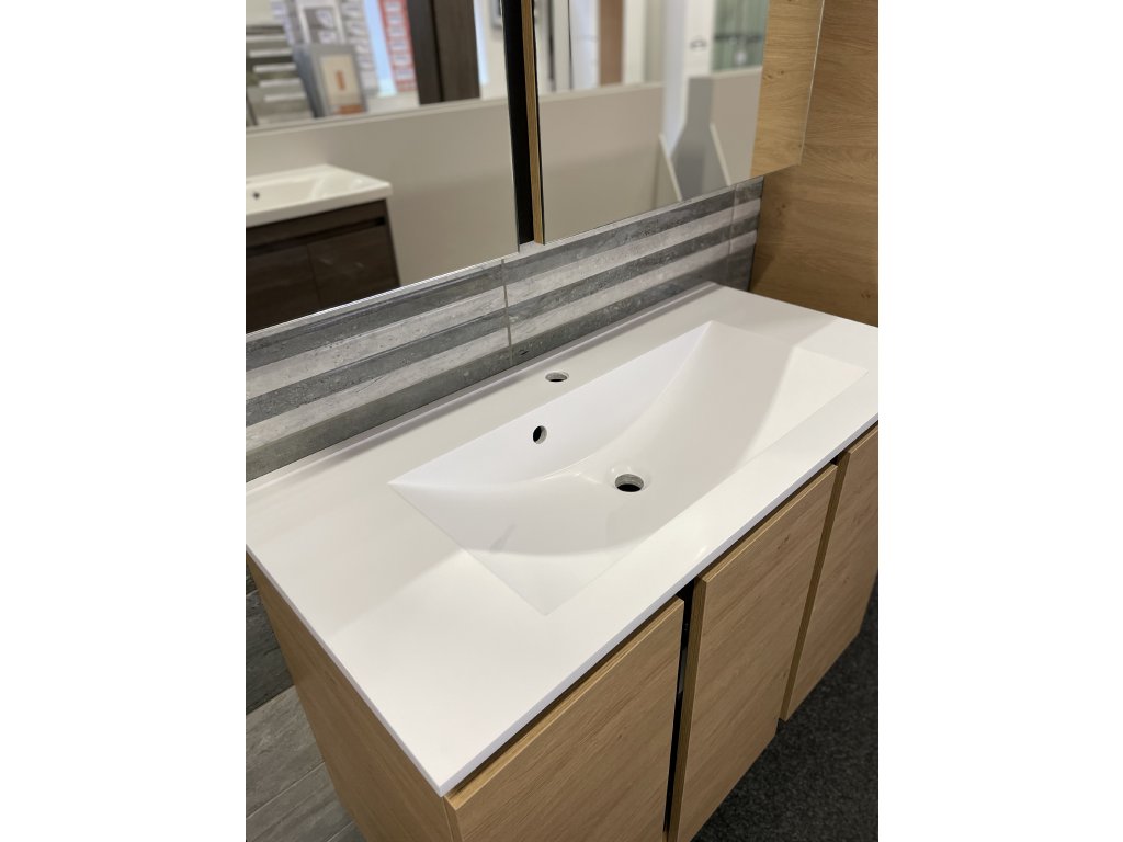 Představujeme Vám luxusní koupelnový nábytek, který zaujme především svým zajímavým provedením. Tato naprosto designová skříňka s umyvadlem by rozhodně neměla chybět v žádné moderní stylové koupelně. Boční strany skříňky a celá konstrukce jsou vyrobeny z MDF desky o tloušťce 16mm. Umyvadlo, které je součástí skříňky, je vyrobeno z luxusního litého mramoru. Povrchová úprava je řešena dekorem dřeva. Velikou výhodou této skříňky je její soft close dovírání, díky kterému bude užívání skříňky naprosto pohodlné. Pociťte výhody a úložný prostor, který Vám tato skříňka dopřeje.
