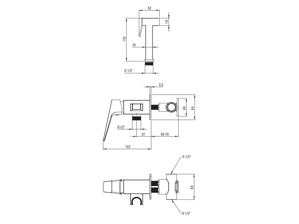 Podomítková bidetová baterie se sprchou Blur