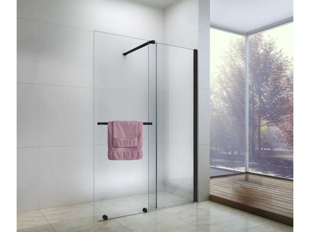 Designová varianta sprchového koutu Walk In s černými profily, která se řadí mezi z jedny nejmodernějších trendů ve vybavení koupelen. Jedná se o otevřený sprchový kout, tvořený jednou stěnou z bezpečnostního tvrzeného skla, zabraňující nechtěnému rozstřiku vody. Povrchová úprava Easy Clean zabraňující usazování nečistot a tvorbě tzv. map po stékající vodě na skle. Voda je odváděna odtokovým kanálkem, umístěným v podlaze. Univerzální provedení pravé nebo levé varianty si dle potřeby zvolíte při montáži. Černé prvky jsou laserem čtyřikrát potaženy povlakem nejvyšší kvality. Díky této technice jsou hliníkové profily chráněny proti korozi, poškození a zabarvení. Sprchový kout Cortis dodá Vaši koupelně na moderním a čistém vzhledu a Vaše koupelna získá ojedinělý designový nádech v nejmodernějším trendu.