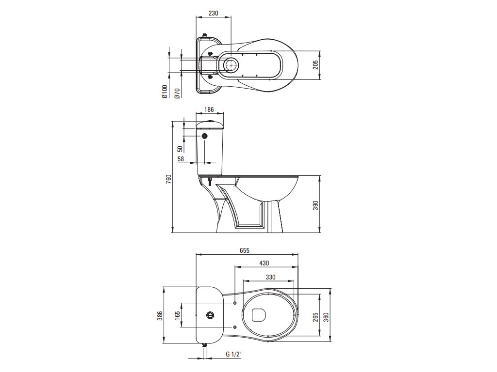 Keramické WC kombi se spodním vývodem je vyrobeno z vysoce kvalitní sanitární keramiky v nadčasové bílé barvě. Díky rozměrům 80,5 × 36 × 65,5 cm (výška, šířka, délka) se hodí i do menších koupelen či samostatných toalet. WC je navrženo pro snadnou instalaci a jednoduchou údržbu, což oceníte při každodenním používání. Nádržka o objemu 10 litrů nabízí úsporné dvojité splachování – malé 3 litry a velké 6 litrů. Součástí balení je soft-close WC sedátko a veškeré technické specifikace jsou přehledně uvedeny v nákresu WC.