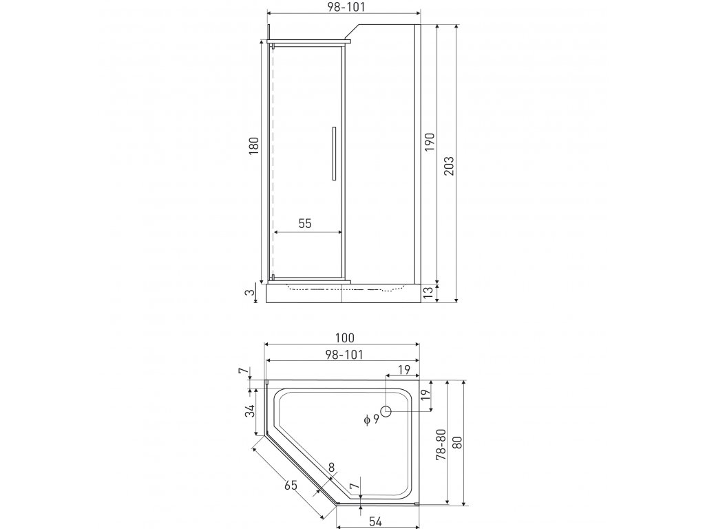 - rozměry sprchového koutu - 100 x 80 x 203 cm (včetně sprchové vaničky)