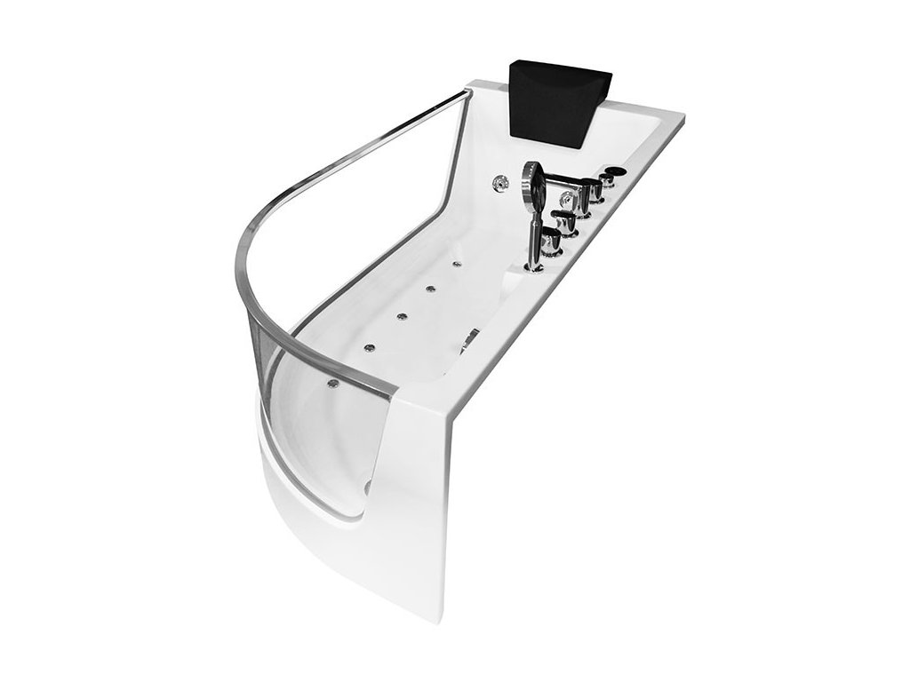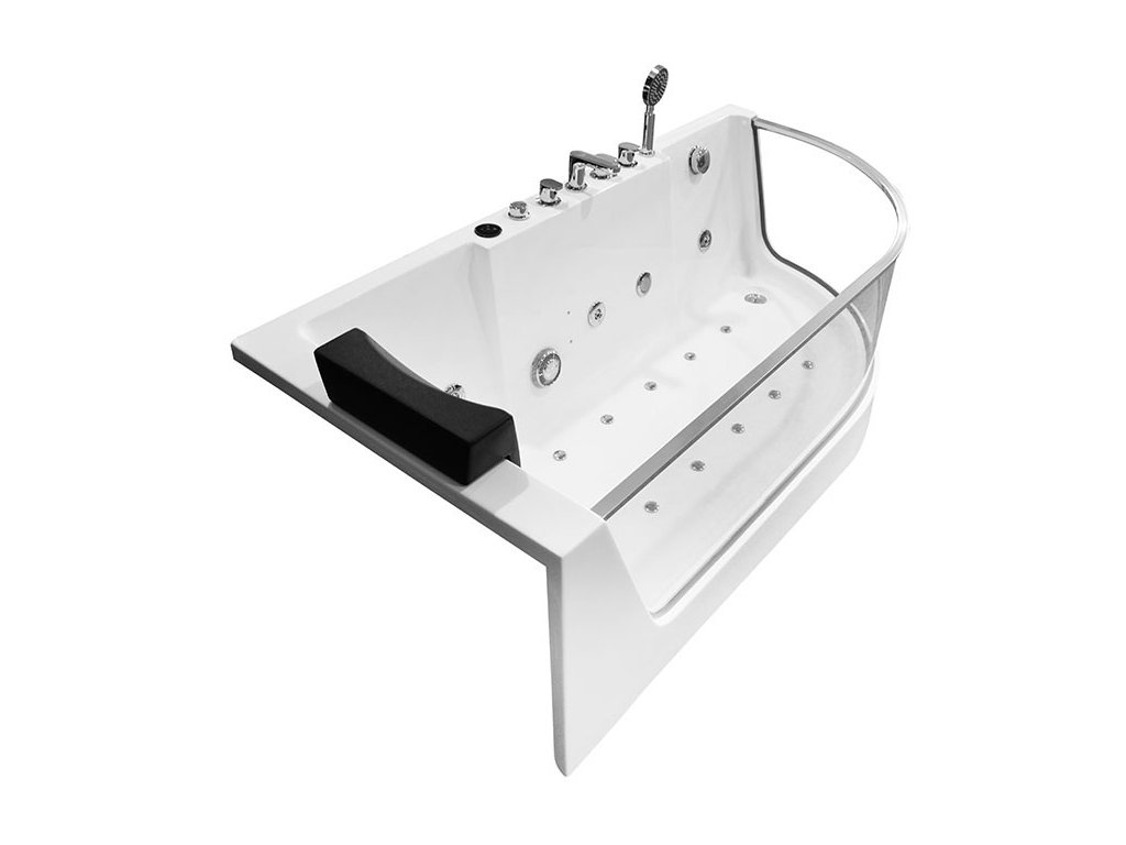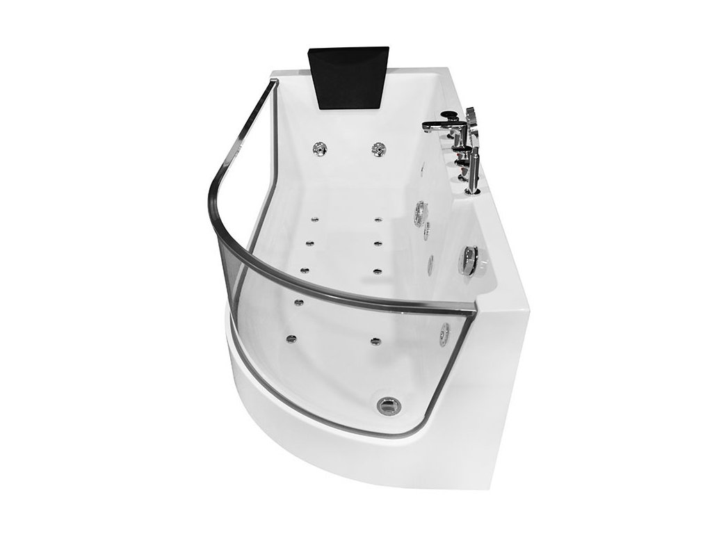 - Asymetrická rohová vana s prosklenou čelní stranou