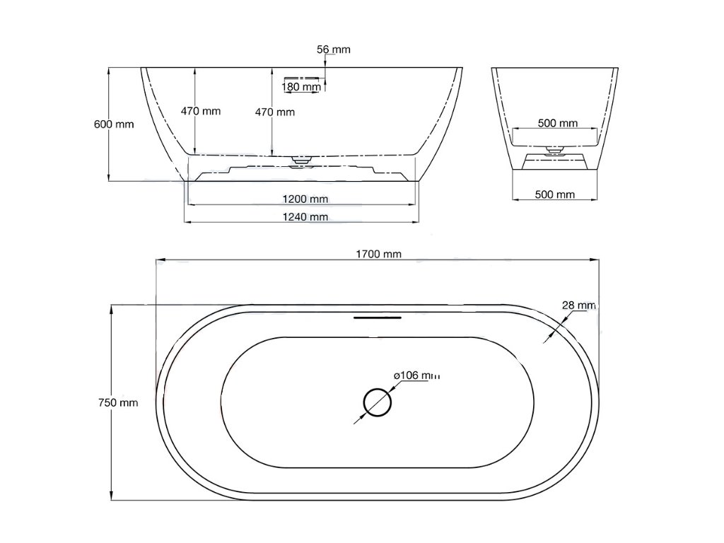 - rozměry vany - 170 x 75 x 60 cm (délka, šířka, výška)