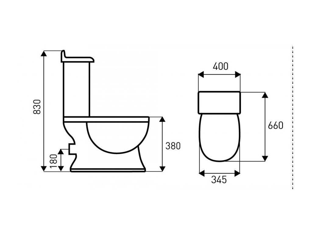 - WC mísa se zadním vývodem - přívod vody při čelním pohledu zleva dole