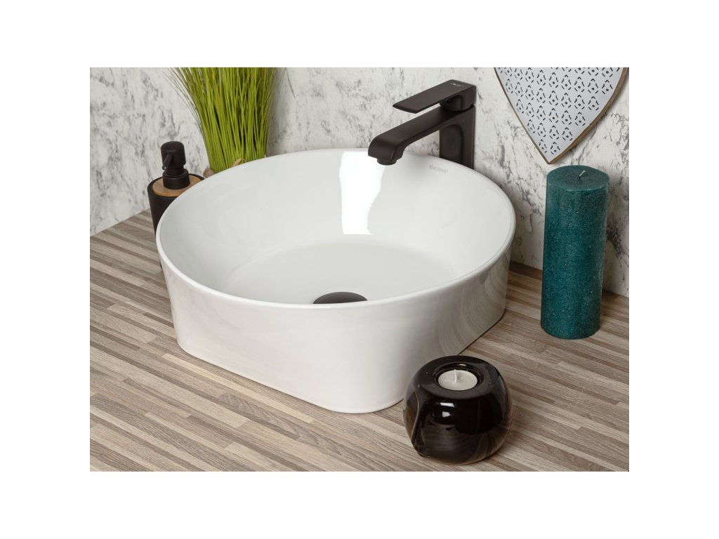 - moderní umyvadlo s ojedinělým vzhledem čtvercového dna se zaoblenými rohy a kulatého vrchu