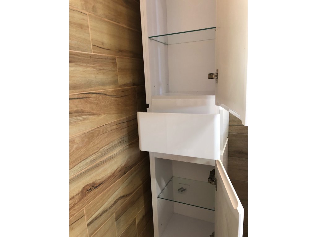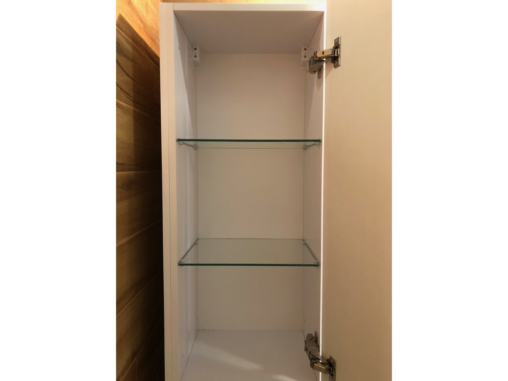 - vnitřní členění - 4 skleněné poličky a jedna zásuvka - "soft close" - měkké a tiché dovírání