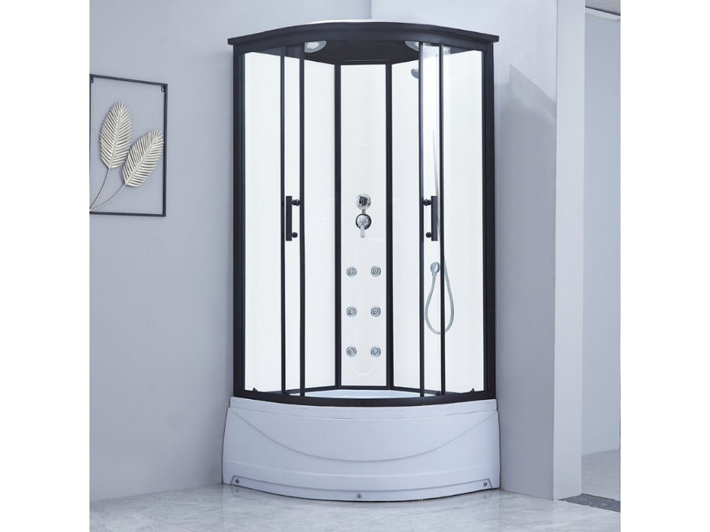 - moderní světlé provedení čtvrtkruhového masážního sprchového boxu