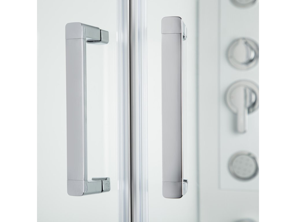 O komfort se starají dvě masážní trysky, dešťová sprcha o průměru 23 cm i tříproudová ruční sprcha. Na estetice boxu se podílí také dvě robustní černá madla. Skla masážního boxu mají anticalc úpravu, která snižuje usazování vodního kamene a usnadňuje údržbu.