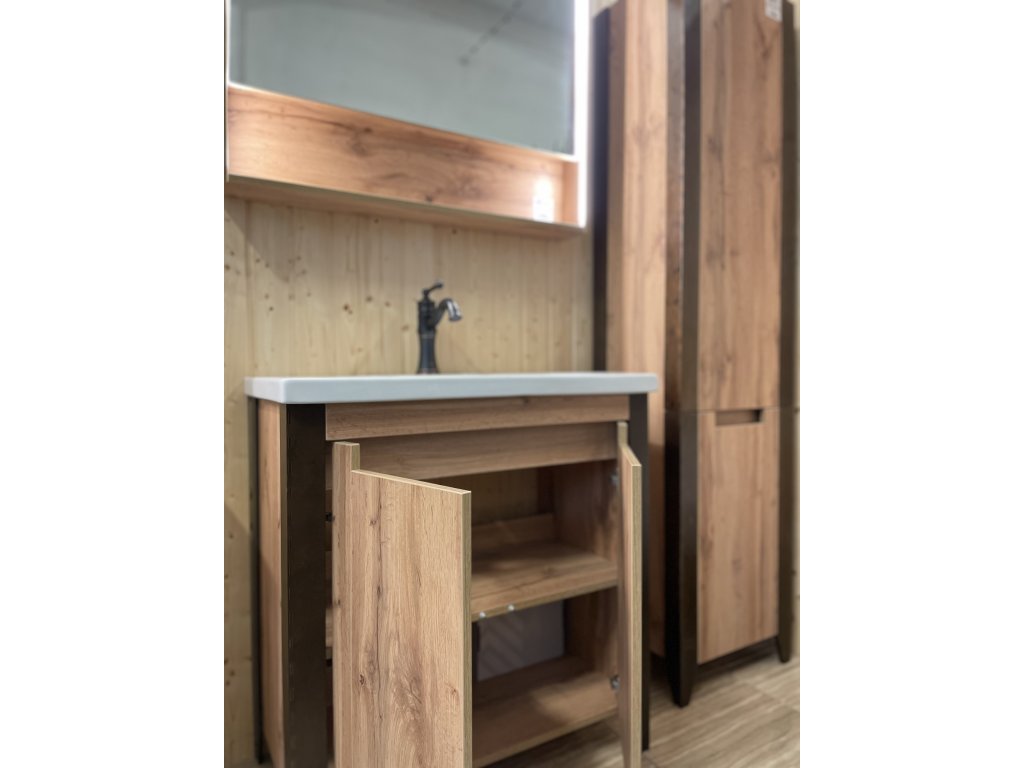 Představujeme Vám zcela nový luxusní koupelnový nábytek, který nadchne úplně každého. Tato naprosto designová skříňka s umyvadlem by rozhodně neměla chybět v žádné moderní koupelně. Skříňka je vyrobena z dřevotřísky o síle 16 mm. Umyvadlo, které je součástí skříňky, je vyrobeno z vysoce kvalitní sanitární keramiky. Povrchová úprava je řešena barvou dubu. Velkou výhodou této skříňky je její soft close dovírání, díky kterému bude užívání skříňky naprosto pohodlné. Pociťte výhody a úložný prostor, které Vám tato skříňka dopřeje.