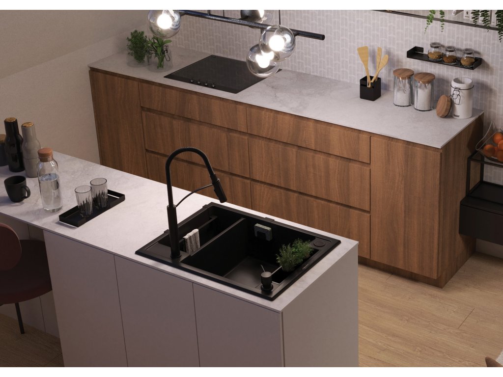 Sada příslušenství ke dřezům je kombinací skvělého designu, pohodlí a funkčnosti. Navíc černá barva jistě dodá vaší kuchyni jedinečný charakter. V sadě obdržíte háček na houbičky, zábradlí na utěrku a hluboký a mělký koš. Všechny výrobky se velmi snadno montují a čistí. Háček zajistí, že se houbička nedostane do kontaktu s jinými předměty. Zajistíte tak vysokou úroveň hygieny a bezpečnost svých blízkých. Příslušenství je vyrobeno z vysoce kvalitní nerezové oceli, která je vysoce odolná proti oděru, mechanickému poškození nebo vlhkosti. Tyto malé nenápadné předměty vám zpříjemní běžné činnosti a rozhodně je učiní pohodlnějšími. Vytvoříte tak ideální místo pro umyté příbory, opláchnuté ovoce a zeleninu nebo nádobí. Organizér je vhodný pro všechny modely dřezů Magnetic.