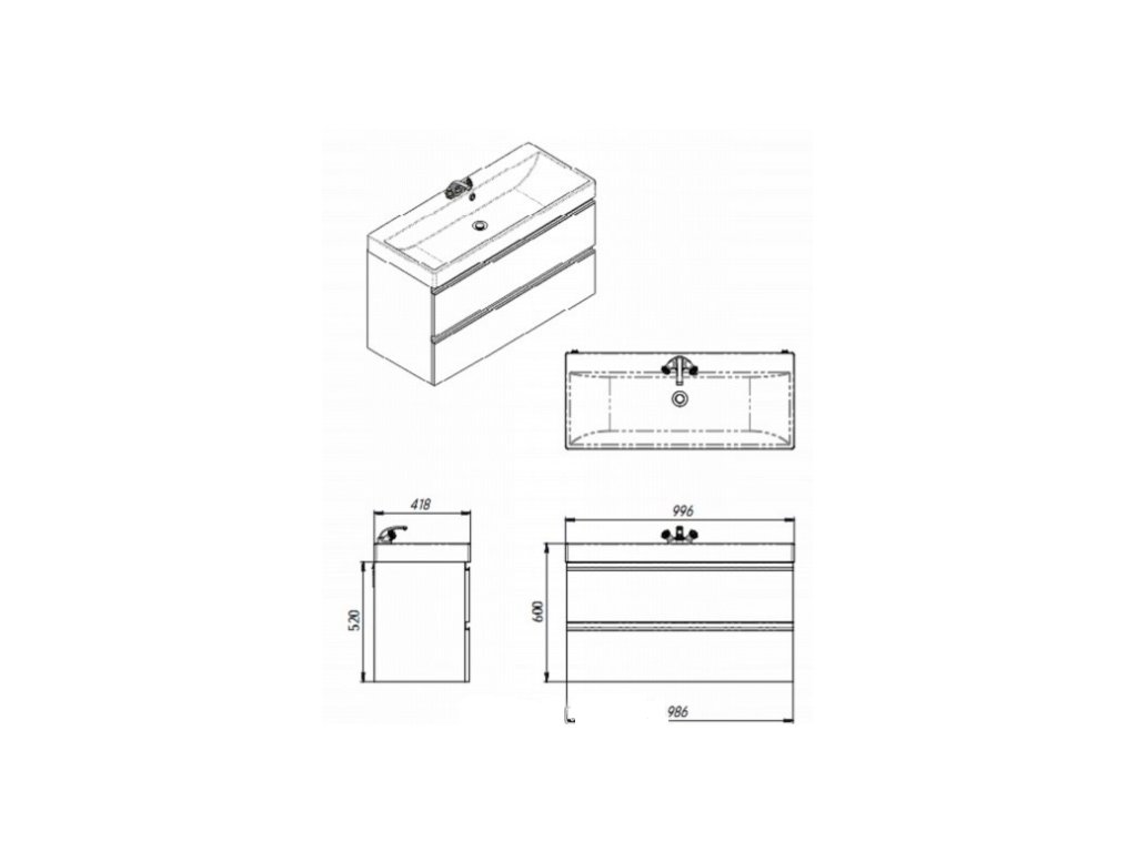 - rozměry včetně umyvadla - 99,6 x 60 x 41,8 cm (šířka, výška, hloubka)