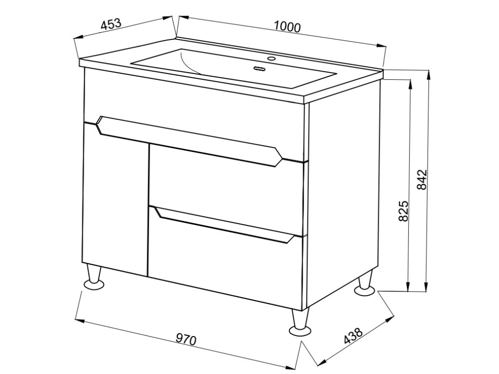 - rozmery skrinky (vrátane nožičiek a umývadla) - 100 x 84,2 x 45,3 cm (š,v,h)