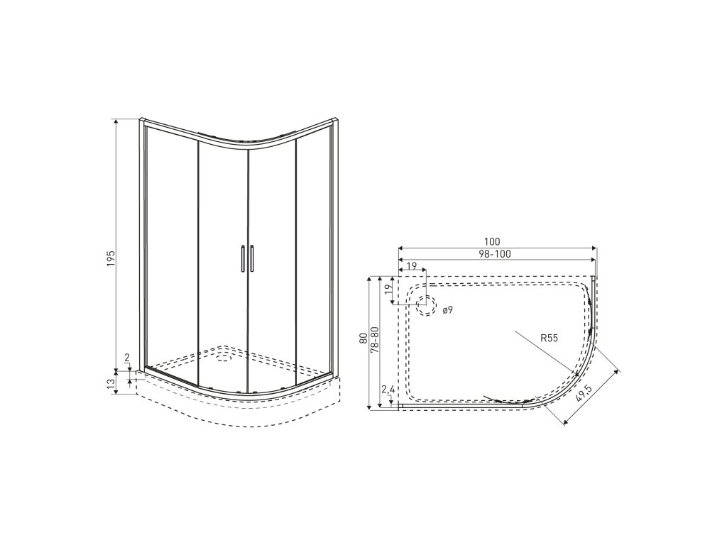 Solid 100x80 D sprchový kout, black