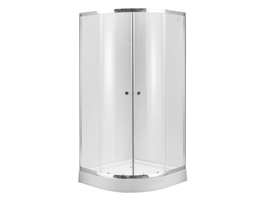Elegantní čtvrtkruhový sprchový kout 100 × 100 × 195 cm s grafitovým bezpečnostním sklem (4 mm) a dvoukřídlými posuvnými dveřmi pro pohodlný vstup. Stabilní hliníkové profily v chromu dodávají moderní vzhled. Součástí je akrylátová vanička (výška 15 cm) s protiskluzovým dnem a vzdáleností k odpadu 7 cm pro snadné napojení.