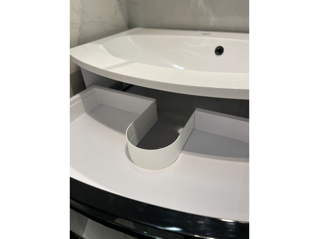 Představujeme Vám zcela nový luxusní koupelnový nábytek, který nadchne úplně každého. Tato naprosto designová skříňka s umyvadlem by rozhodně neměla chybět v žádné moderní koupelně. Boční strany skříňky jsou vyrobeny z MDF desky 16mm. Přední strana skříňky je vyrobena z MDF desky 18mm. Umyvadlo, které je součástí skříňky, je vyrobeno z litého mramoru. Povrchová úprava je řešena černou barvou potaženou s průhledným lakem. Úchyty skříňky jsou z nerezové oceli. Skříňka je určena na zavěšení na zeď, což je zárukou bezproblémového úklidu. Velkou výhodou této skříňky je její soft close dovírání, díky kterému bude úžívání skříňky naprosto pohodlné. Pociťte výhody a úložný prostor, který Vám tato skříňka dopřeje.