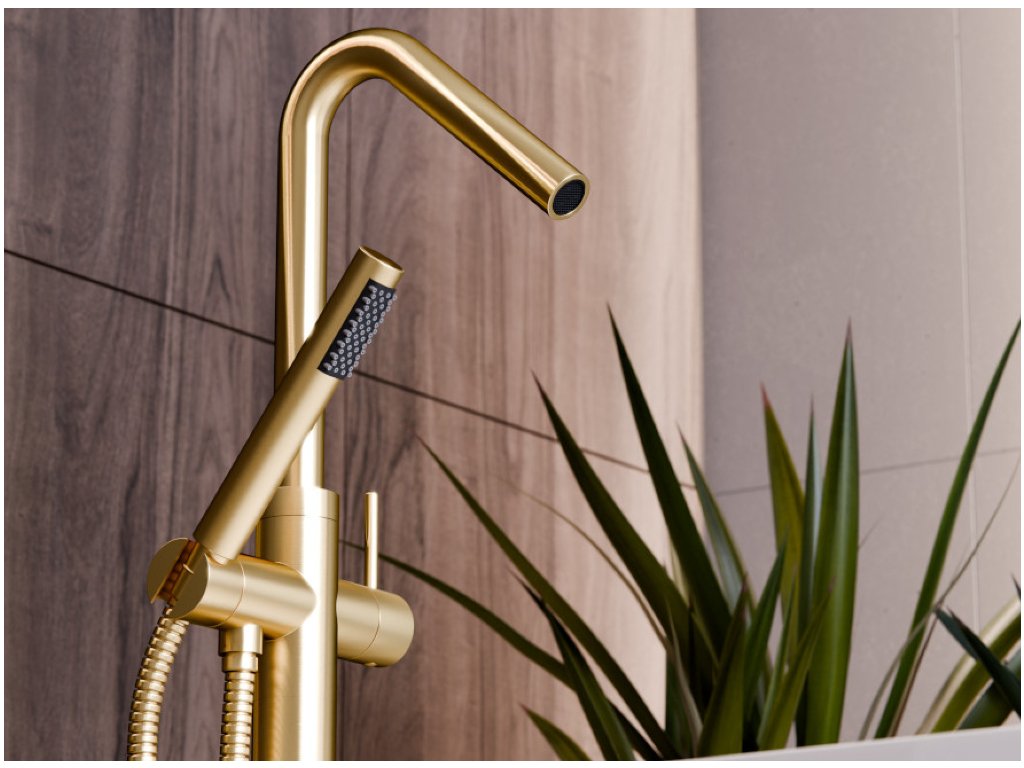 Veo volně stojící vanová baterie, kartáčované zlato